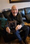 Aan zijn lichaamsuitdrukking te zien werd dit met dank afgenomen. Wij werden gastvrij ontvangen door zijn dochter die ook apetrots was met deze eer. Wij overhandigden hem het gedenkplaatje en wat mooie kadobonnen, toepasselijk van een viswinkel.